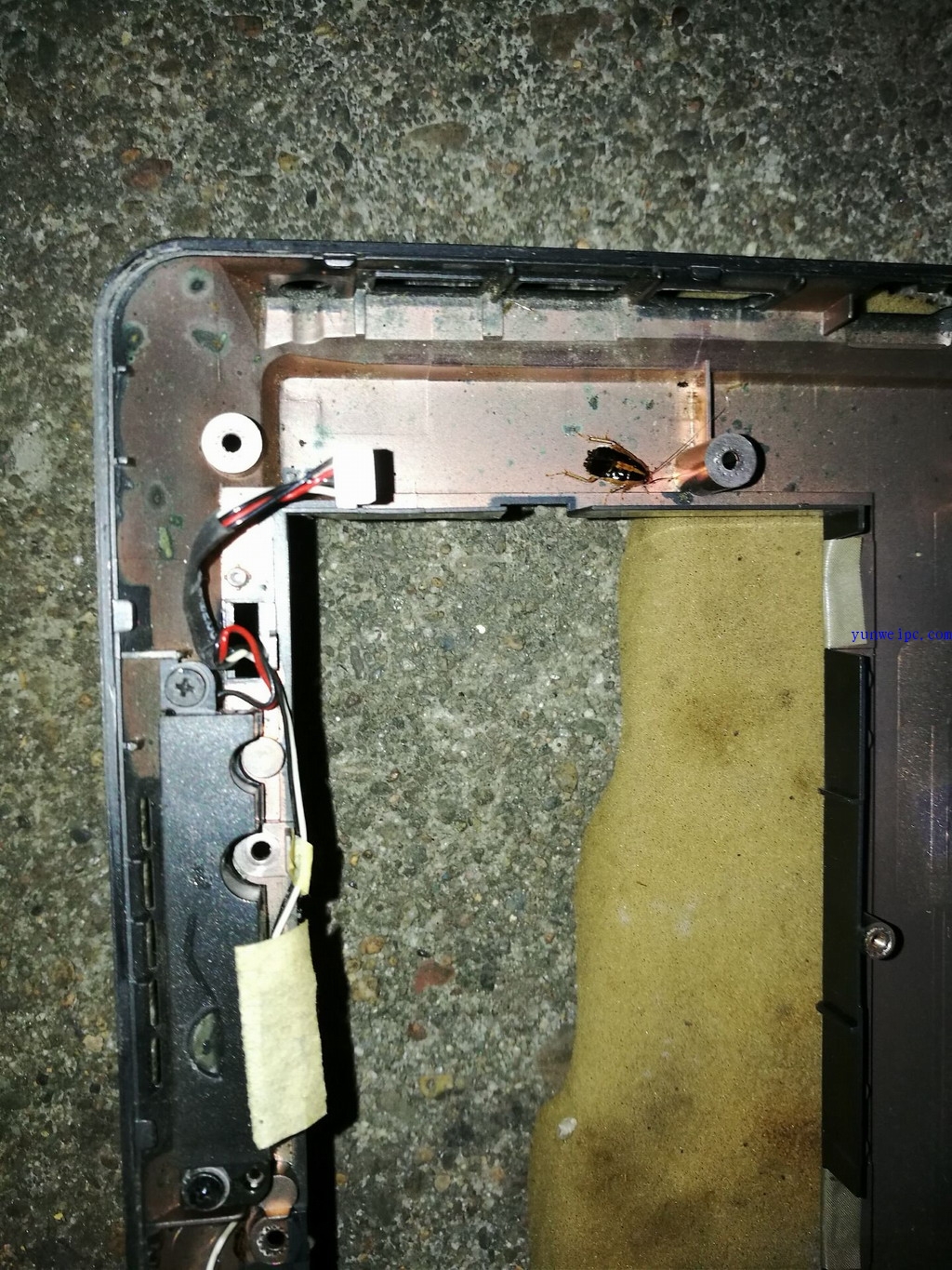 电池灯显示在充电,但按开关无反应,开不了机,当面打开硬盘盖一看,很多大大小小蟑螂,整个机器一股嗅味,大可能主板被蟑螂屎腐蚀了,报价开单。