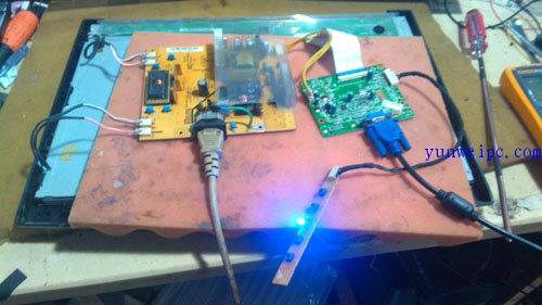 按常规思路此故障是高压或灯管故障。所以,直接给顾客报完价,就折机开修。拆机后,电源板和驱动板表面还很新,不像是灯管老化或故障。所以,习惯性给高压外接了四根灯管,开机用了不到两分钟,故障还是一样,所以,不是灯管问题,那就是高压问题了。想都没多想,改高压!由于长城M1931高压包有点特殊,不像LG或三星的包,所以只能改通用高压条代替。取下原板的高压包,花了几分钟时间,从通用高压条上飞了几根线到电源板,全部就续后,测机。换好后拷机10分钟没事,正准备告诉顾客拿走时,又黑屏了。这下把我给弄得有点头疼了,也不是高压问题,是驱动板故障,检测驱动板3V,1.8,5V都正常,看来不是主芯片,就是程序的问题,手头上没有主芯片,先刷程序再说,用我的编程器数秒写进去,MCU的大小为128K,芯片刷好程序后,装机,拷机1个小时一切正常,到此机器修复完毕。