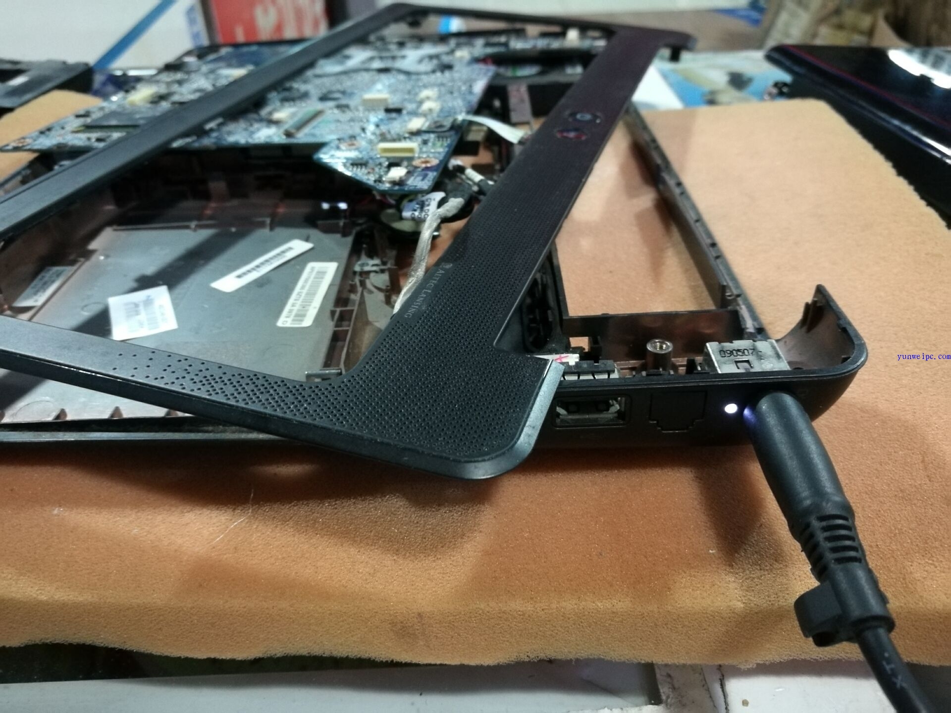 电源接口处的白色指示灯还是不亮(适配器的灯是亮的说明适配器是好的,问题在机器)如下图: