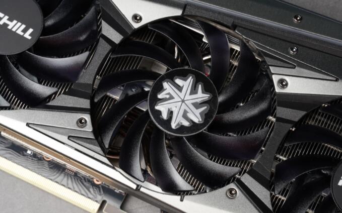 风扇部分,正面3颗9公分、11片刀叶扇设计的风扇,中间风扇是ICHILL的雪花标志,左右两颗风扇则是iCHILL的字样。侧边的4.5公分风扇则是7片叶片的设计,并且同样是ICHILL雪花图标。