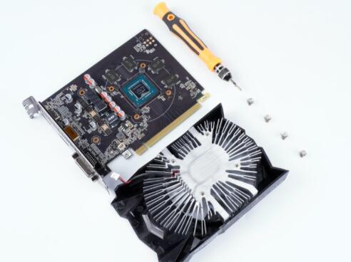 将显卡拆解后,可以看到散热器方面是使用大面积铝挤,直接将底部与芯片进行接触来压制发热。做成向日葵的形状,则能将整机的热量带往鳍片上,再交由风扇将热排出。