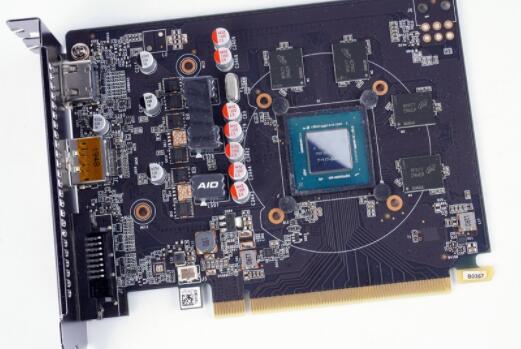 PCB部分,可以看到中央为GTX 1650 D6的核心芯片,型号为TU117-300- A1,和GTX 1650 D5版本基本一致。一旁则是这次4颗1GB GDDR6的Micron內存颗粒,也是这次主要升级的部分。