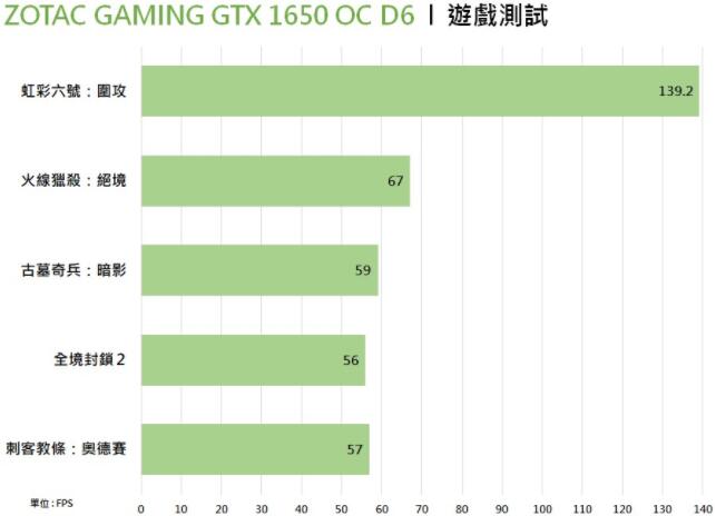 所有游戏测试都在1080p的分辨率下进行,考察到《刺客教条:奥德赛》、《古墓奇兵:暗影》、《全境封锁2》、《火线猎杀:绝境》四款AAA大作特效全开对入门显卡极为吃力,因此测试前全部调降至预设的《高》画质。而像《虹彩六号:围攻》这类较不吃性能的多人竞技游戏,就直接使用预设的《极高》画质进行测试。