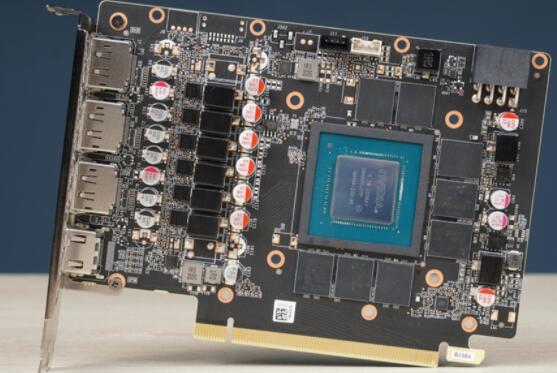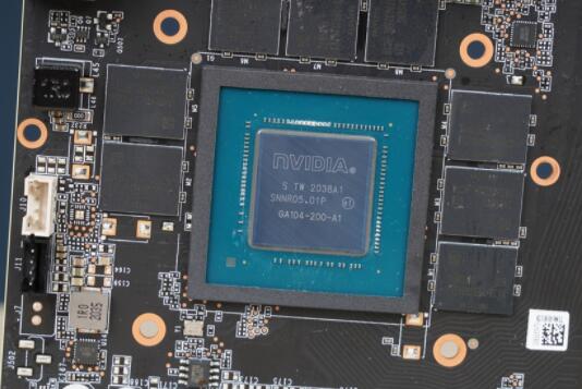 PCB中间为GA104-200-A1核心芯片,內存则为SAMSUNG K4Z80325BC-HC14颗粒,虽然仅在核心CUDA数有做删减,不过供电设计也有跟着调整,仅采用了6+2相的设计,并使用单8-Pin供电。