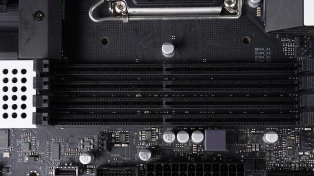 內存方面提供4 x DIMM DDR4插槽,可扩充到双通道DDR4内最大128 GB的容量与DDR4 3200MHz时脉,超频部分则是支持至少至5000 MHz。