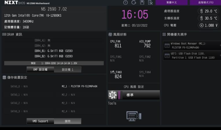 NZXT N5 Z690主板设有NZXT色调风格的BIOS界面,并且与ASROCK BIOS界面十分相似。主板的7.02 BIOS版本中不只优化了CPU性能也更新了Intel® 的微指令。