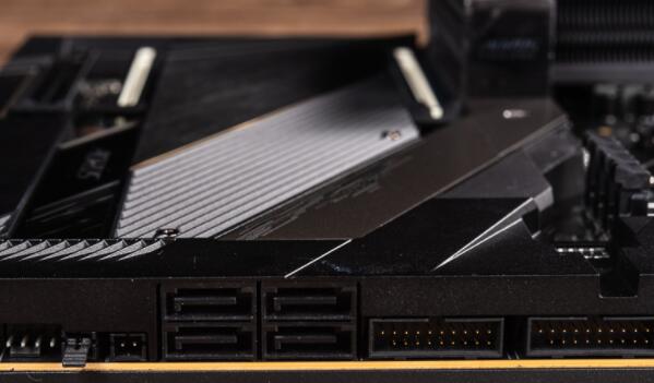 移除M.2散热器,板子提供4根M.2扩充,第一根M2A_CPU采用CPU信道PCIe 4.0 x4规格,第二根与第三根M2P_SB、M2Q_SB,则都支持PCIe 4.0 x4信道,至于最后一根M2M_SB则同时支持PCIe 4.0 x4与SATA规格。