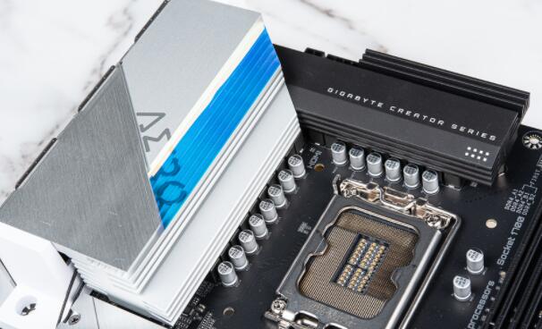 第12代Intel Core处理器采用LGA 1700脚位,周围则是VRM供电相,并采用大型铝制散热片替供电元件散热,左侧的散热片则延伸到I/O外壳上方,让整体视觉更佳霸气。