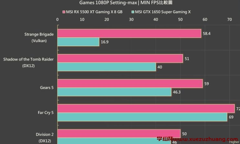 MIN FPS就是看游戏过程中出现较低的FPS,RX 5500 XT还是比较强一点。