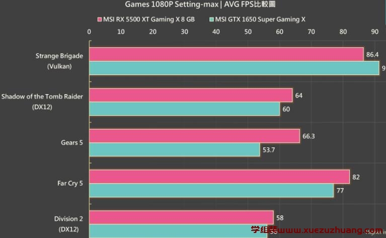 这是我们随机抽出的五种游戏平均FPS比较,大多数游戏RX 5500 XT FPS比较高一点。