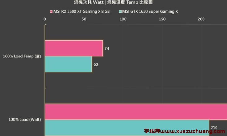室温26度,Furmark烧机功耗和温度都是GTX 1650 SUPER较低,因为GTX 1650 SUPER Gaming X功耗挡在100W,另外RX 5500 XT Gaming X则在130W功耗。