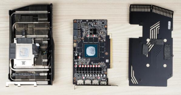 PCB部分RTX 3070 TWIN EDGE采用的是标准尺寸,整体看上去相对紧凑些,不过这也是在ZOTAC GAMING显卡上常看到的特色,元件多PCB就大一些,元件少PCB就小一些,显卡尺寸也会跟着缩小。