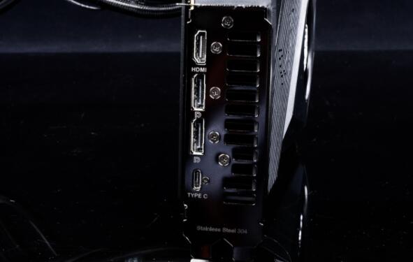 显示输出后I/O则是与公版一样,一个HDMI 2.1与两个DP 1.4a,此外还有一个USB Type-C形式的DP输出,应对现今部分高阶屏幕主打的USB-C单一接口解决方案的模式来说更加方便,供电接口则是使用双PCI-E 6+2 Pin,同样也是维持与公版相同的配置。
