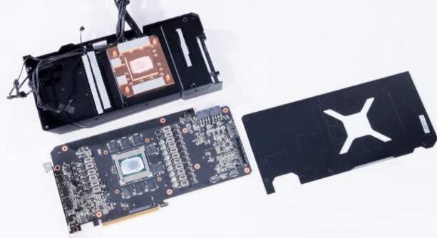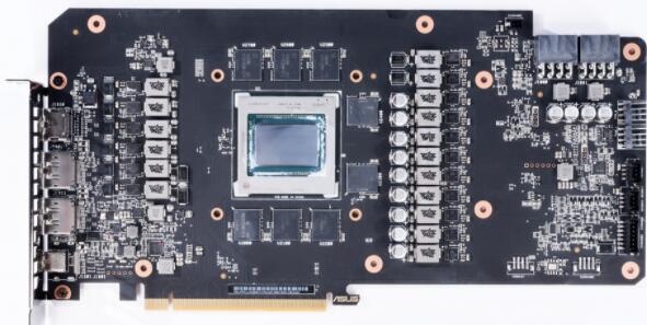 ASUS ROG STRIX LC RX 6800 XT O16G GAMING显卡除了外观上我们看到显眼的水冷以外,里面的用料到底是如何,我们当然也要实际拆解看看,我们将散热器移除,以进一步分析该显卡上的用料与电路等细节。
