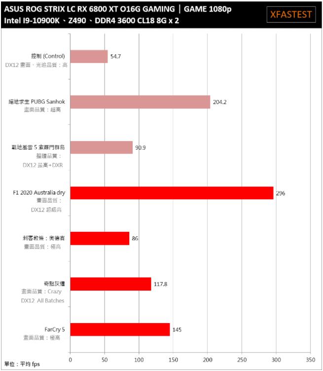 由上述测试图表我们可以得知,基本上这张ASUS ROG STRIX LC RX 6800 XT O16G GAMING算是能够满足绝大多数1080p情况下的游戏性能表现,同时在一些具备DXR光线追踪的游戏方面表现也是不错,一些对特效要求相对较低游戏几乎都有着144 FPS以上的表现。