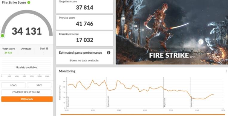 在3DMark游戏性能模拟测试中,Fire Strike DX11游戏模拟测试中,物理测试获得41,746分,另外Time Spy DX12游戏模拟测试中,CPU分数获得13,476分。
