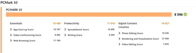 PCMark 10主要是模拟日常使用状况做测试,分别以3个大方向做测试,有Essentials基本电脑测试、Productivity生产力测试及Digital Content Creation图像内容创作测试。ROG STRIX Z690-E搭配Intel Core i9-12900K及NVIDIA GeForce RTX 3070 Ti,在PCMark 10测试中于Essentials测试获得10,480分、Productivity测试获得11,016分、另外Digital Content Creation测试获得14,927分。