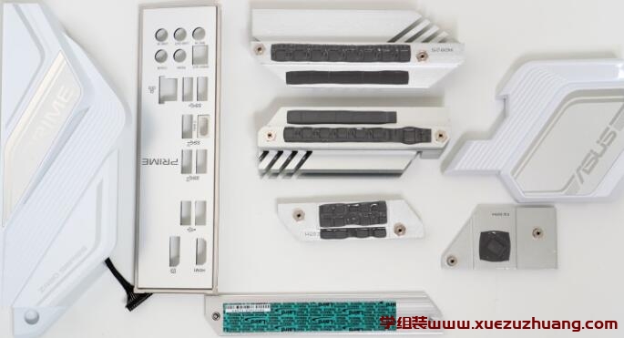 拆下主板全部散热器和马甲,VRM和晶片组散热器上都有导热胶条。