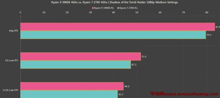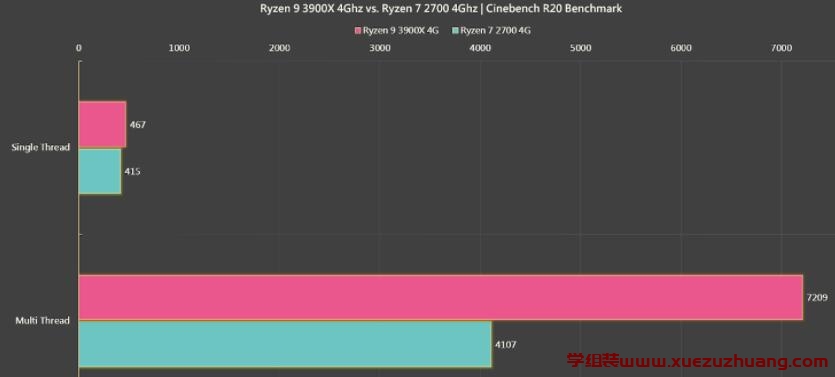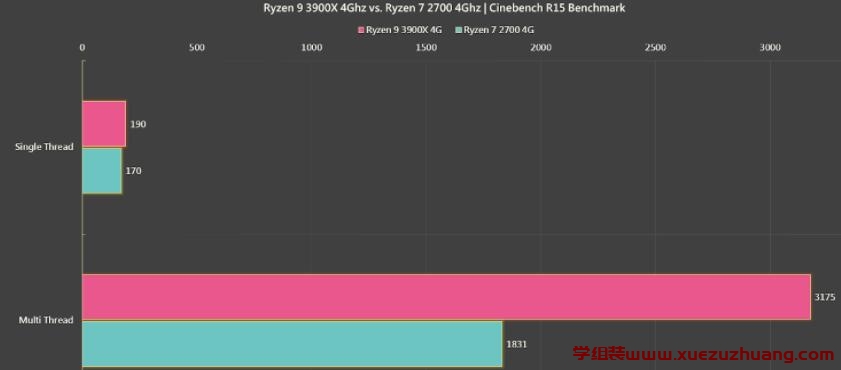 桃红色代表R9 3900X,湖水绿代表R7 2700,两颗都是超频4GHz。