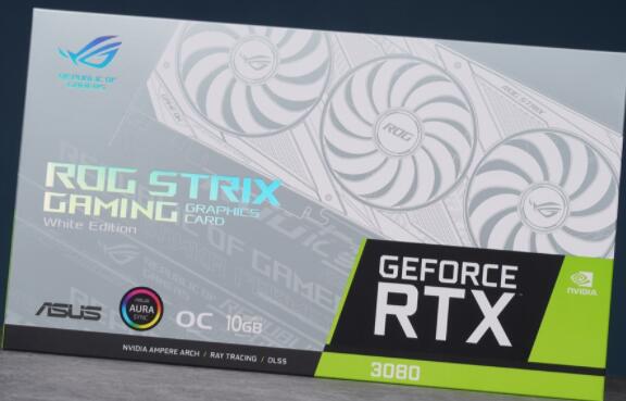 潮竞白系列为华硕针对白色爱好者推出的系列,去年RTX 20系列显卡也推出潮竞白限量款,这次RTX 30系列也不例外,ROG Strix GeForce RTX 3080潮竞白外观上与原版的没有太大的差异,一样是2.9 slot、三风扇超大尺寸,不过外观上全部几乎都换成了白色,设计上没有过多用其他颜色做搭配,因此身为白色控的笔者觉得这次的设计还算不错。