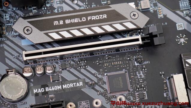 VRM供电位置都有铝合金散热器帮助散热,第一组M.2有M.2 SHIELD FROZR散热器,支持PCIe 3.0 x4和SATA 6Gb/s,第二组M.2支持PCIe 3.0 x4。
