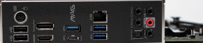 预先安装I/O挡板,PS/2键盘鼠标、HDMI、DP、USB 3.2 Gen 1(Type-C),Lan有线网络,音源孔、S/PDIF光纤。
