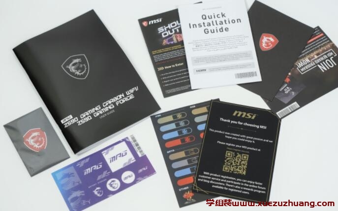 这次的配件相当的丰富,除了说明书外,有很多相关的文件可以阅览,还有MSI龙纹贴、MSI潮流贴纸、线材标示贴纸。