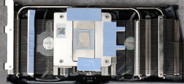 在散热部分ZOTAC GAMING GeForce RTX 3050 Twin Edge OC采用自家Icestorm 2.0散热系统,散热器中间采用均热版与核心接触,均热版将热导至3根热导管,可以将热分散至整个散热鳍片,另外在內存与供电部分也有散热贴与散热鳍片接触,以维持整体的散热表现。