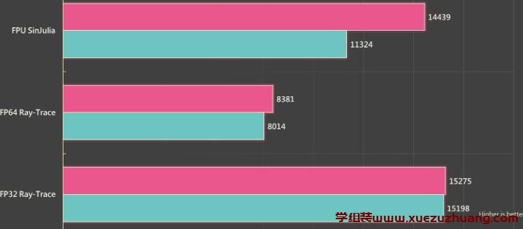 AIDA64 FPU测试,FPU SinJulia测量扩展精度浮点性能,FP64 Ray-Trace测试通过使用SIMD增强光线跟踪引擎计算场景来测量双精度(也称为64位)浮点性能,FP32 Ray-Trace测试通过使用SIMD增强光线跟踪引擎计算场景来测量单精度(也称为32位)浮点性能,这些测试中R7 3700X展现了较高的分数。