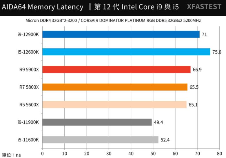 只不过,目前DDR5高时脉之下,相对內存时序则比DDR4还要宽松,测试的CORSAIR DDR5时序为CL38,i9-12900K內存延迟71ns、i5-12600K则是75.8ns,这或许需要点时间让DDR5內存慢慢优化。