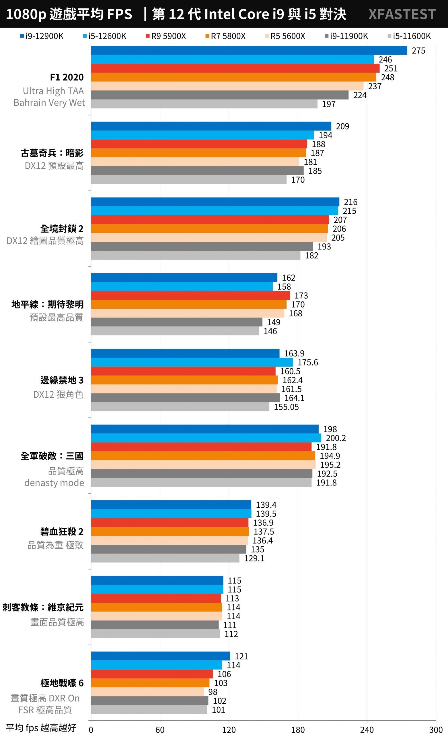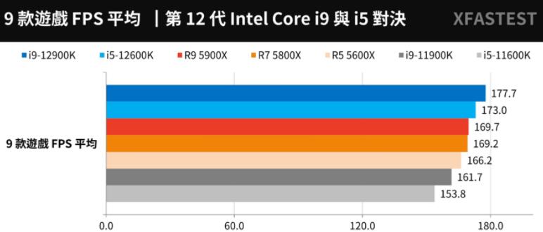 P-core与E-core的混合构架下,能让游戏有着更高的FPS与顺畅度,9款AAA游戏可达到平均177.7 FPS、i5-12600K平均173 FPS的高效能,对于游戏玩家来说这代i5、i7与i9肯定是游戏的首选。