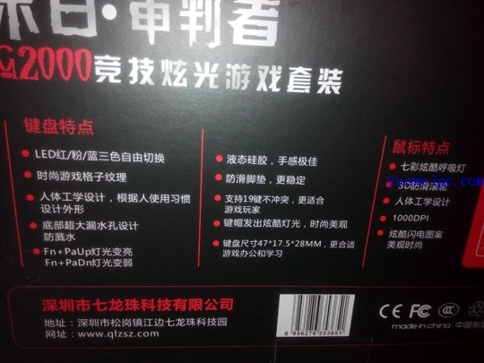 火力王G2000三色发光套件3D游戏蓝光引擎有线套件lol cf竞技