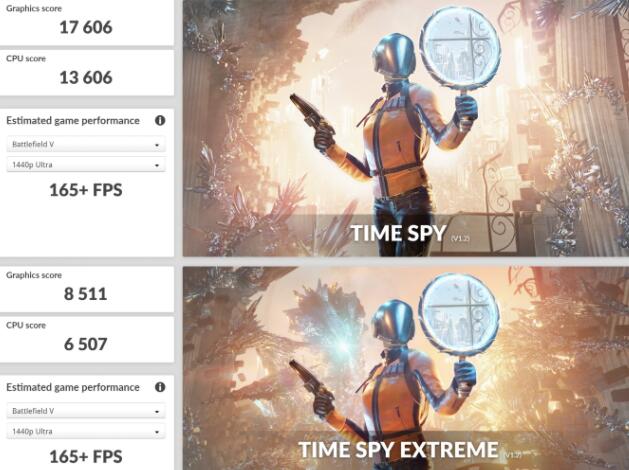 3DMark Time Spy测试,是模拟基于DirectX 12 API的游戏,将电脑在运行AAA游戏时的表现以分数化来评断。而3DMark Time Spy与Extreme分别在2K与4K分辨率下运行。Radeon RX 6800 XT GAMING OC 16G在图形分数上分别获得17606、85118分。