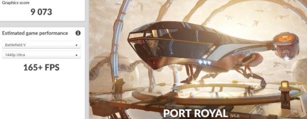 3DMark Port Royal测试,是模拟基于DirectX 12的DXR API游戏,将电脑在运行光线追踪游戏时的表现以分数化来评断,并在2K分辨率下运行。Radeon RX 6800 XT GAMING OC 16G获得图形分数9073分。