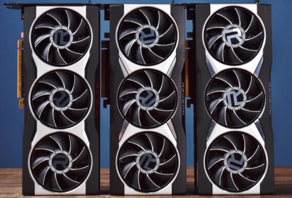 AMD Radeon RX 6000系列三剑客:中RX 6900 XT、右RX 6800 XT、左RX 6800,由于造型上采用相同设计,因此公版若不看背面型号贴纸,也是有点难分出RX 6900 XT与RX 6800 XT。