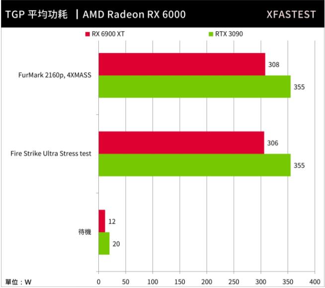 RX 6900 XT平均功耗约在306W、瞬间功耗最高367W,比起RTX 3090还省了50W;AMD在RDNA 2构架下的功夫,在时脉、性能提升后,对于温度压制与功耗控制都有着相当好的表现。