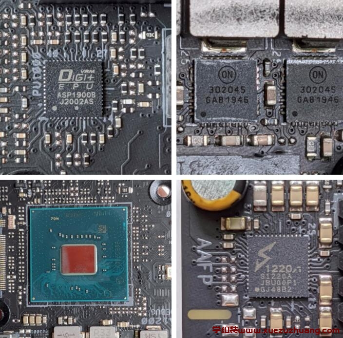 ASUS订制的ASP1900B PWM控制器,MOSFET是NCP302045 45A Power Stages,H470晶片组,SupremeFX S1220A音效芯片。