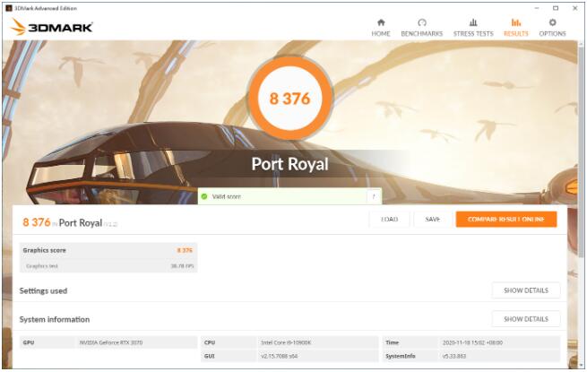 Fire Strike以目前还是比较常见的DX11 API为基础做为测试,一般的Fire Strike分辨率为1080p,Extreme则是1440p。另外Ulrta就是4K级别的测试,主要针对多GPU的平台,Time Spy则是采用DX12 API来进行,而Port Royal则是以DXR API为主的测试情境。