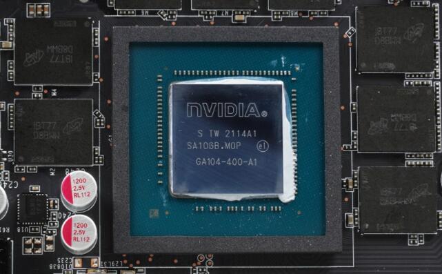 PCB部分可以看到基本上与之前开箱过的RTX 3070差不多,核心部分可以看到采用GA104-400-A1的核心芯片,內存则为8颗Micron D8BWW 1GB的內存颗粒,供电设计采用了10+2相的设计,并使用双8-Pin供电。