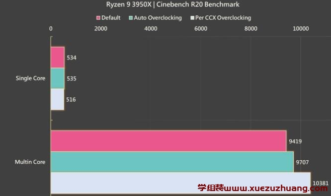 Cinebench R20 Benchmark,三种模式的R20分数,预设和PBO模式单核分数比手动定频高,但多核分数手动定频比前两者模式高。