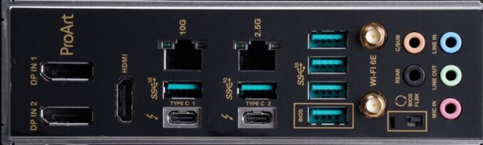 这次华硕新推出的ProArt Z690-CREATOR WIFI主板在价格上,与自家ROG Strix Z690-E相近,不过在设计上采用完全不同的思路,像ROG Strix Z690-E设计上更多的是PCIe 5.0扩充的花式调配,而ProArt Z690-CREATOR WIFI则更注重PCIe 4.0扩充的合理分配,并在后I/O直接提供了Thunderbolt 4界面及Marvell 10Gb以太网络,满足创作者在各类型储存扩充界面上的需求。
