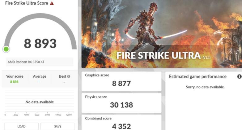 3DMark Fire Strike性能测试,为主流的1080p分辨率、DirectX 11 API的测试情境,RX 6700 XT达到32,013分,而1440p的Extreme则有17,152分,更高4K 2160p分辨率的Ultra测试则获得8,893分的成绩。