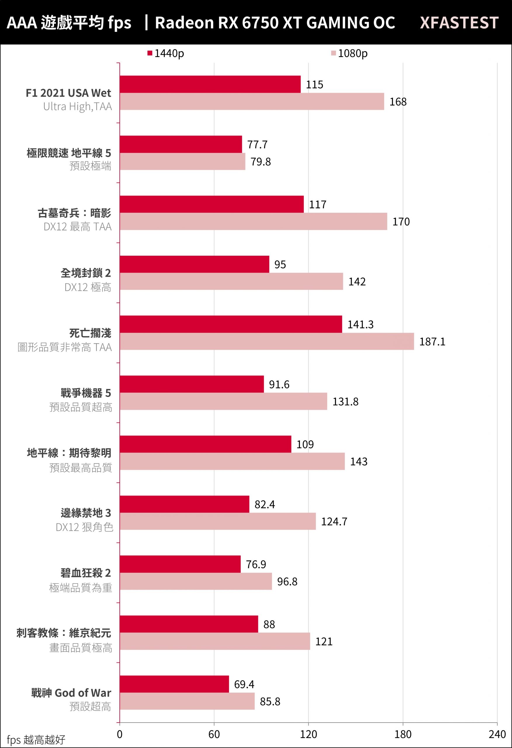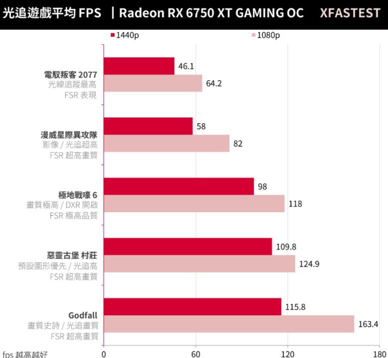 RX 6750 XT面对这11款AAA大作,在1080p分辨率达到平均131.8 FPS、1440p平均96.6 FPS的高效能,像是《战神》1440p分辨率即便未开启FSR也有着平均64.4 FPS的足够性能,而《刺客教条:维京纪元》1440p也有着平均88 FPS的性能。