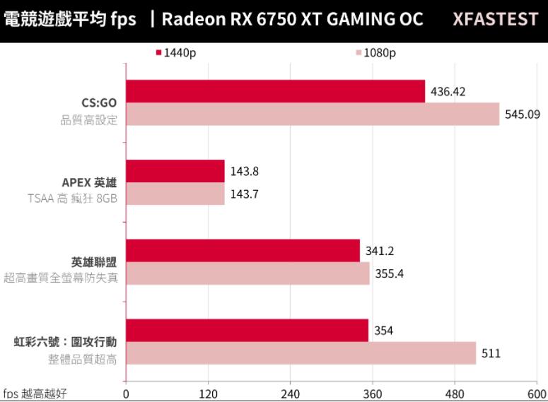 RX 6750 XT对于电竞类游戏不论是1440p、1080p都可达到平均100 FPS以上的性能,搭配高更新率屏幕也不成问题。