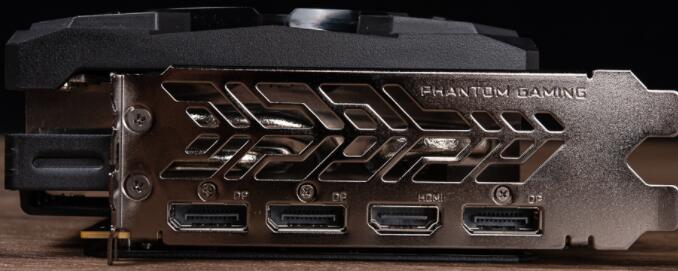 显卡上侧则有着PHANTOM GAMING字样,并具备着RGB灯效;显卡需要2个PCIe 8-pin供电,而在供电旁则有额外的3-pin ARGB针角与LED On/Off开关,让玩家可藉由显卡来扩充ARGB设备。