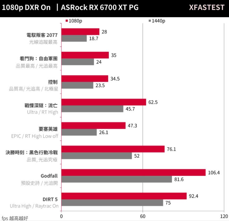 从测试结果来看,ASRock RX 6700 XT Phantom Gaming可满足1440p与1080p分辨率特效全开的高效能。