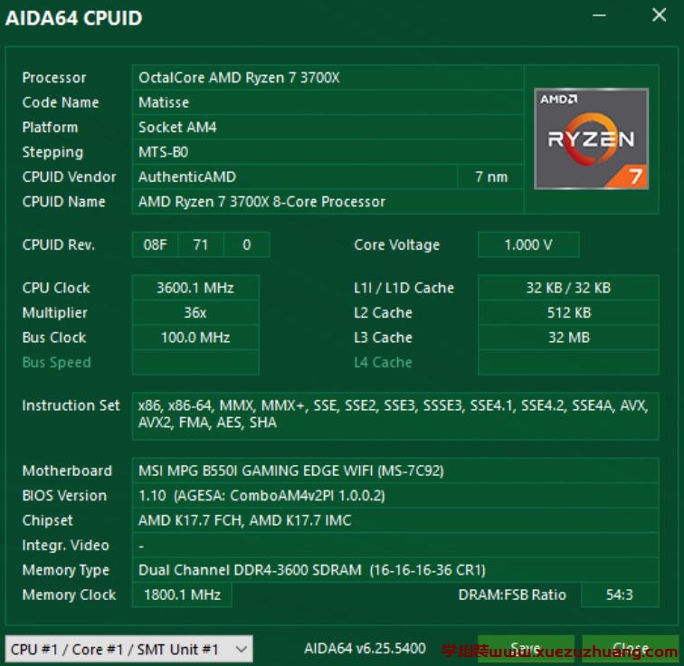 內存: G.SKILL Trident Z Neo DDR4 3600 CL16 @3600