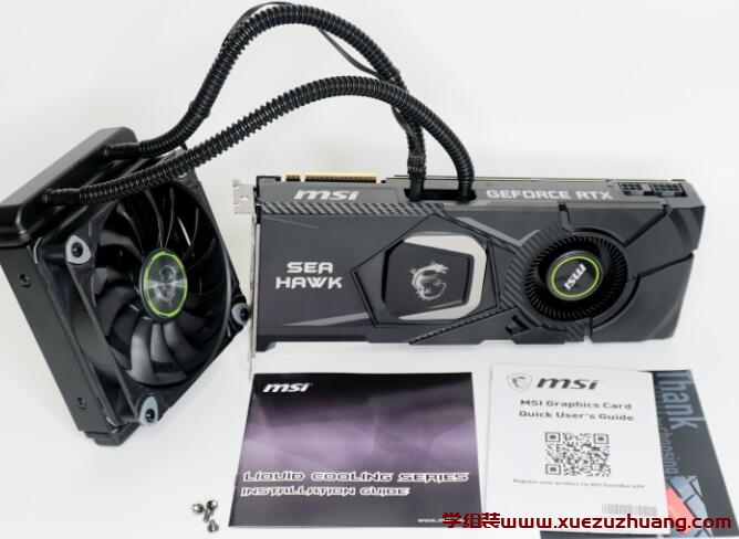MSI GeForce RTX 2080 SUPER SEA HAWK X,看到SEA HAWK表示有水冷散热器,目前SEA HAWK X搭配GPU水冷头和风扇双散热,解热能力不会让你失望!觉得水冷设备安装很麻烦的玩家,这款SEA HAWK X水冷显卡就连风扇都不用让你动手装,安装好显卡、锁上冷排,两个步骤就完成,来看看SEA HAWK X水冷显卡可以让温度降到多低。