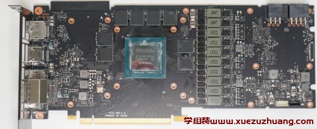 PCB正面,采用8 + 2(GPU +內存)相电源设计,PWM供电使用两颗uP9512P,控制GPU和內存供电,FDMF3170 MOSFET,R22和LR47电感。
