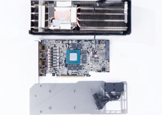 我们实际拆解这张显卡,并分析里面的用料情况,我们将散热器移除,以进一步分析该显卡上的用料与电路等细节。
